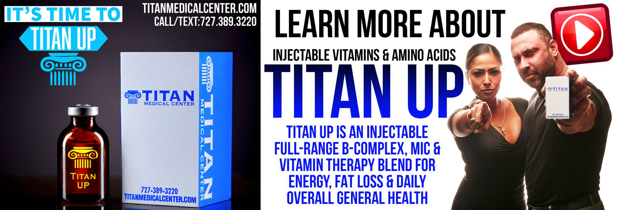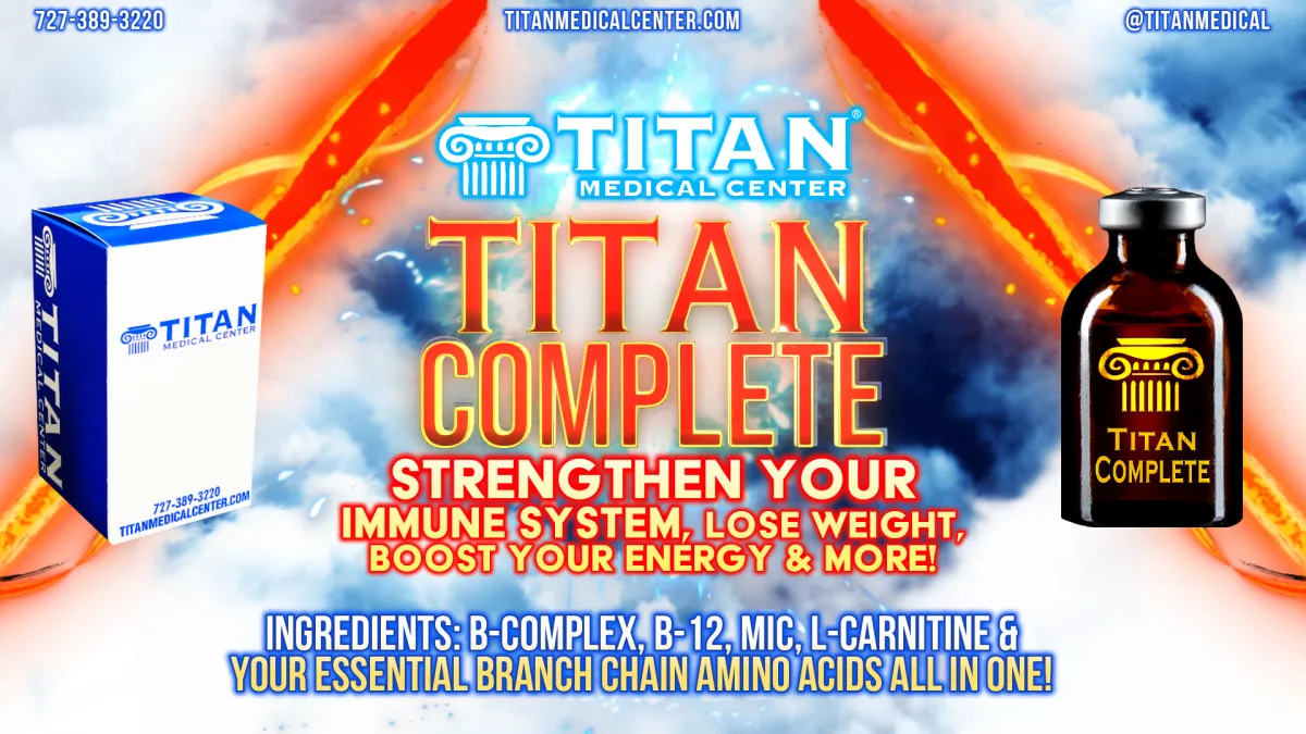 Titan Up is an injectable therapy blend that combines B-complex vitamins, amino acids,